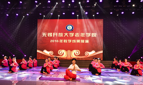 1月6日下午,无锡市教育电视台11楼演播厅内光影灿烂,热闹非凡,我校老年学院2016年教育成果展演正在这里隆重举行。此次展演通过微信进行直播。无锡市教育局副局长吴洵如、社会教育处副处长范臻,学校党委书记刘彬、校长张旭、副校长田建军、副校长沈芝燕出席了此次展演。部分老年学员代表和教师代表也在现场观看了此次展演。
