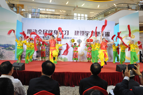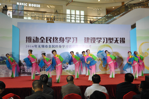 10月30日,由无锡市教育局主办,我校承办的2016年无锡市全民终身学习周在万象城正式启幕。本次活动周的主题是“推动全民终身学习 建设学习型无锡”。市政府副秘书长吴建昌、市教育局局长唐加俊、无锡开放大学党委书记刘彬共同按下启动球。开幕式由市教育局副局长吴洵如主持,校长朱林林、副校长沈芝燕以及社会教育部负责人参加了开幕式。