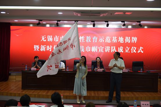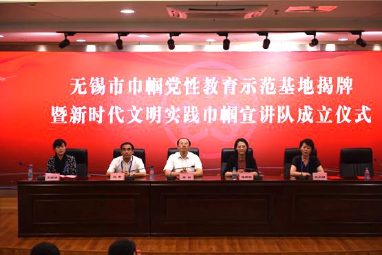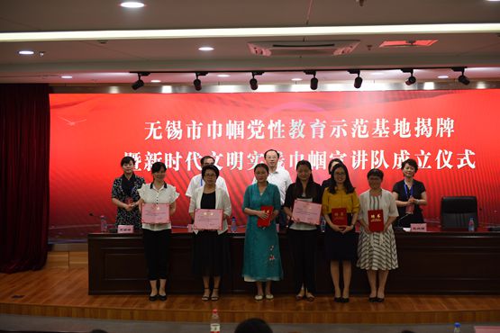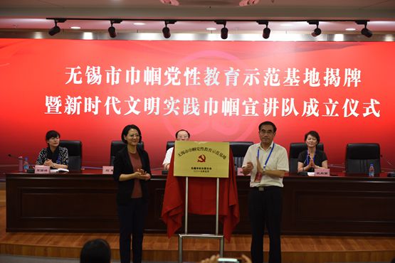 7月5日,无锡市巾帼党性教育示范基地揭牌暨新时代文明实践巾帼宣讲队成立仪式在我校举行。市委宣传部副部长、市文明办主任商明,市妇联党组书记、主席蒋群联,市妇联副主席杭向丽,市教育妇工委副主任高丽婷,我校党委书记刘彬、妇女代表和无锡市新时代文明实践巾帼宣讲队部分成员与会。