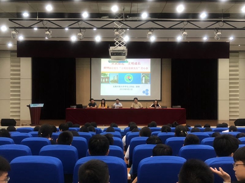 2019年9月1日晚上六点整,学生工作处、后勤与装备保障处、校团委和校学生宿舍自主管理委员会联合在艺术楼报告厅组织召开“从我做起、文明成长——2019年住宿生“文明住宿我先行”交心会。会议由学生工作处杨勇处长主持,近两百名2019级住宿同学和校党委副书记王仁刚、后勤装备处胡云副处长、团委庄璟副书记、学生工作处王富强老师、各系部政治辅导员及物业公司林燕飞宿舍主管共同参加了会议。