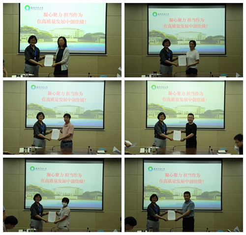 党委书记刘彬、校长张旭分别向各系(部)、各处(室)负责人下发了各部门的2020年重点目标任务书。
