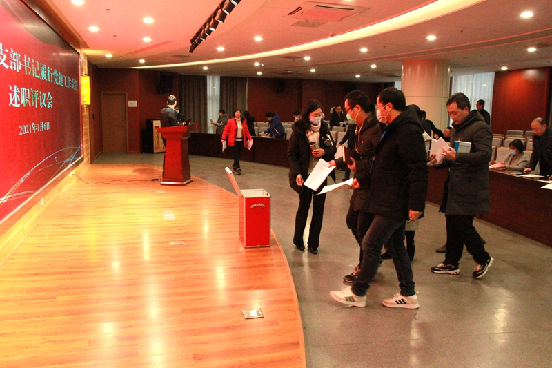 七位党支部书记围绕贯彻中央和省市委关于加强基层党建工作部署要求、全面提升党支部标准化规范化建设水平进行现场述职,内容主要包括履行党建工作责任情况、党建重点工作进展情况、做好思想政治工作情况、抓好党风廉政建设情况、本支部党建工作存在的突出问题,加强和改进工作的思路措施等。述职结束后,与会人员对七位党支部书记履行党建工作责任进行投票评议。