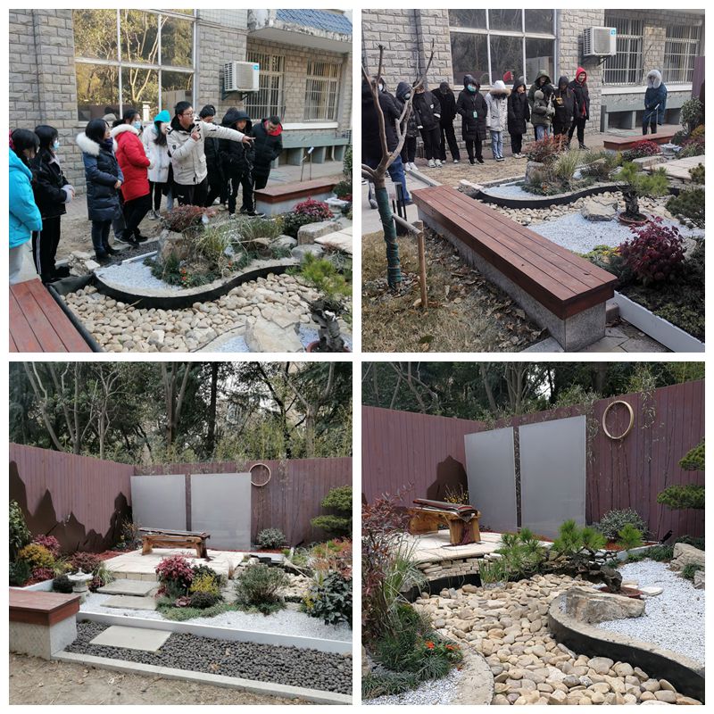 在庭院施工完成后,环境园林教研室还组织了所有的园林班同学对本作品进行了现场的观摩和学习,参与施工的老师和同学对设计思路、施工工艺和植物配置等进行了详细的讲解,给其他同学们上了一堂生动直观的园林实践课,取得了良好的教学效果。