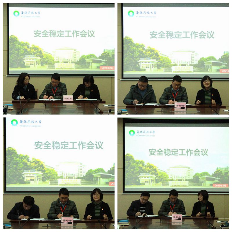 会上,学校主要领导同分管领导、学校主要领导同系(部)负责人、分管领导同处(室)负责人和直属单位负责人分别签订安全工作责任书。