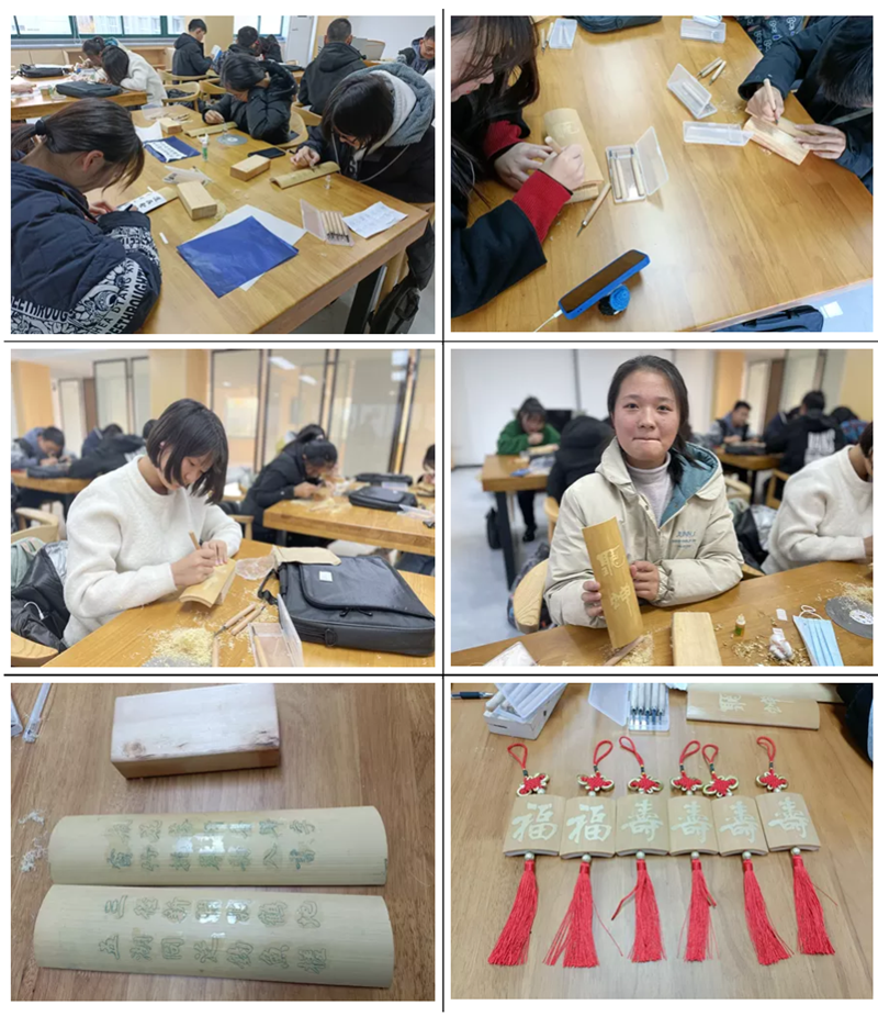 今年10月,我校邀请了国家级非遗项目“无锡留青竹刻”的国家级非遗大师乔锦洪、省级非遗传承人乔瑜来校开课,已有20名学生经遴选后加入特色社团开始学习。