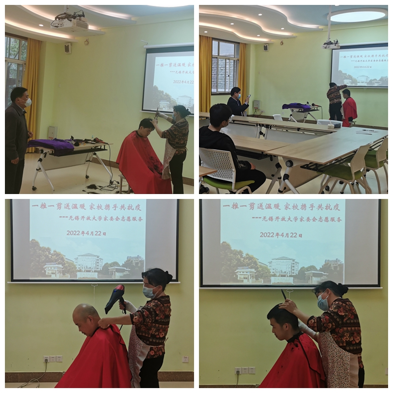 4月22日下午,在学生成长与发展中心4115教室,同学们和服务外包人员有序接受理发、随剪随走。学校贴心的安排,切实解决了学生们的“头”等大事,家长暖心的服务得到师生家长的好评。