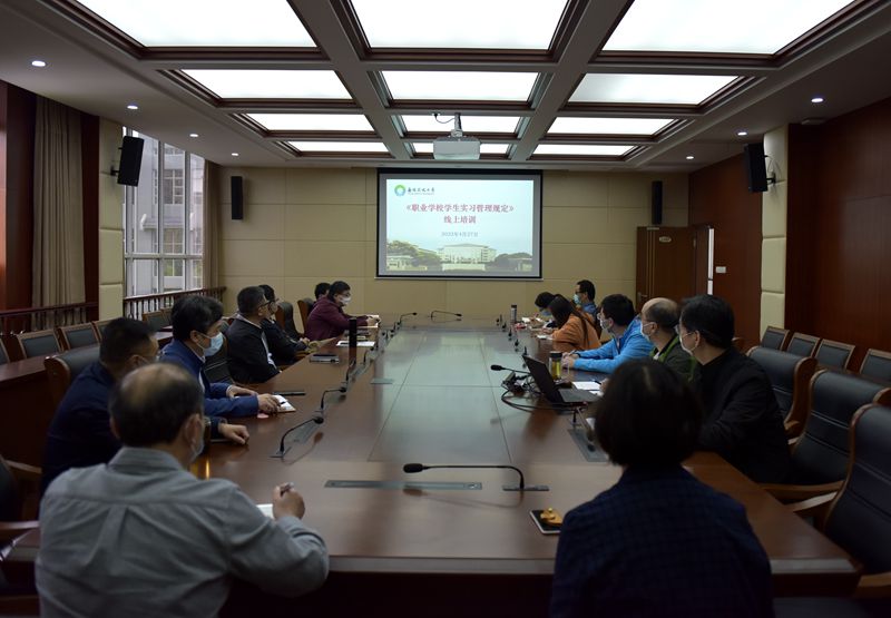 为贯彻落教育部等八部门关于印发《职业学校学生实习管理规定(修订)》要求,切实规范职业学校学生实习管理工作。4月28日上午,我校按照要求组织参加了《职业学校学生实习管理规定(修订)》线上培训会。校长张旭、副校长唐东、纪委书记高峻,教务处、学工处相关负责人及各学院院长、副院长、各专业负责人在行政楼四楼会议室集中收看了此次视频会议,各教学点同时在线参加培训活动。