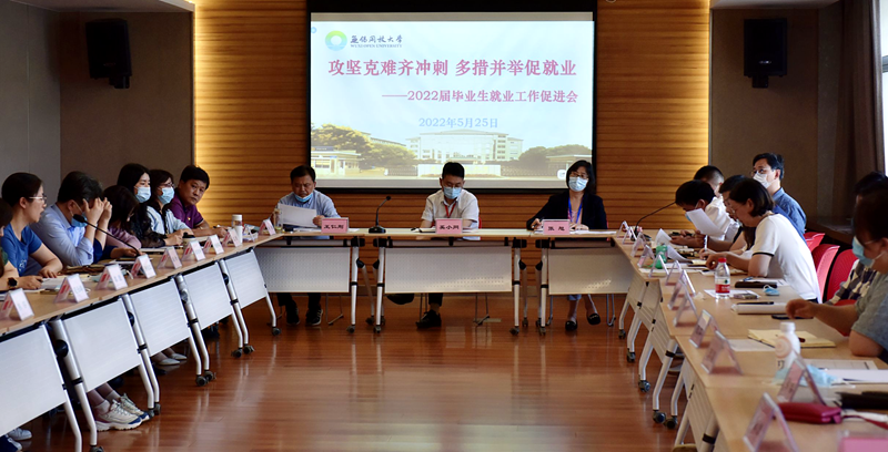 就业是经济的“晴雨表”,是社会的“稳定器”,也是民生的“压舱石”。促进大学生就业创业是重要的民生工程,关系到学生的切身利益和社会的和谐稳定。为了做好2022届毕业生就业工作,采取有效措施推进学生就业创业,5月25日,我校组织召开了“攻坚克难齐冲刺,多措并举促就业”2022届毕业生就业工作促进会。校党委书记奚小网,校长、党委副书记张旭,校党委副书记王仁刚,各学院院长、党总支书记,教务处、党群工作处、学生工作处、团委等职能部门主要负责人和2022届全体班主任共同参会,会议由学生工作处处长杨勇主持。