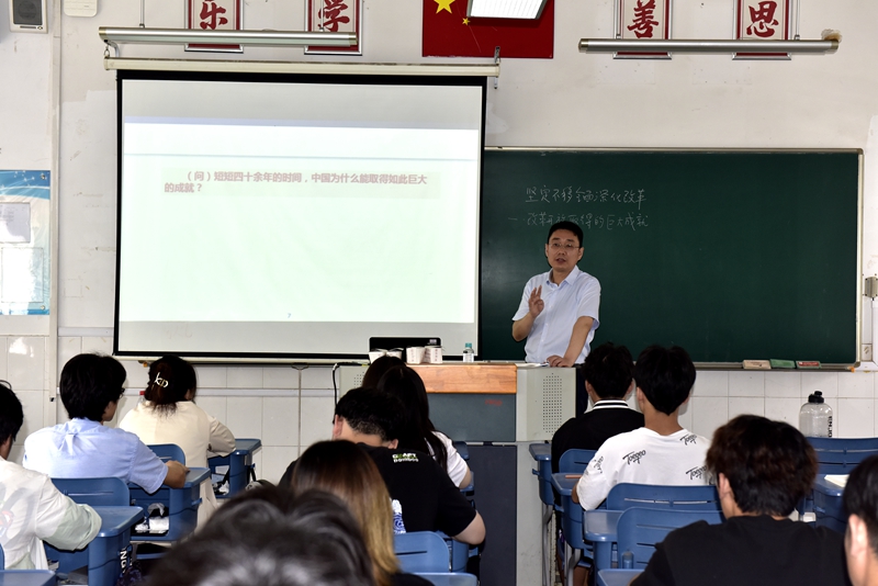 校党委书记奚小网、党委副书记王仁刚、副校长唐东、纪委书记高峻以“坚定不移全面深化改革”为题,从邓小平“改革开放理论”谈起,结合改革开放四十余年取得的伟大成就,深入分析了新时代全面深化改革的新内涵、新特点,阐述了全面深化改革的方向、立场、原则等基本问题,引导学生深刻认识新时代坚持全面深化改革的重要意义,从理论和实践的角度,深刻揭示了“改革开放是决定当代中国命运的关键一招,也是决定实现‘两个一百年’奋斗目标、实现中华民族伟大复兴的关键一招,新时代必须坚定不移地推进全面深化改革”的基本道理。