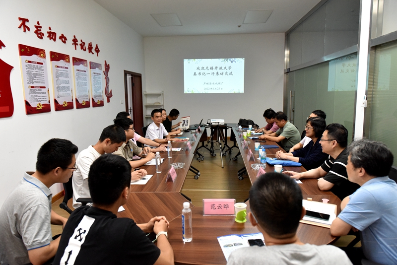 张旭校长与学生代表进行了亲切交流,详细了解了大家从事的技术岗位,询问了在校期间所学知识在实际岗位中的运用情况,勉励同学们要努力成长为企业的优秀员工。张校长同时也与公司领导围绕企业的岗位技能需求进行了探讨,张校长希望各学院要切实加强与企业的对接,将最新最实用的岗位技能教给学生,让学生在校期间所学技能能够满足企业需求。张旭校长希望此次访企拓岗可以更好地促进无锡开放大学和无锡市水务集团之间的沟通,同时推动校企双方在人才联合培养、产学研合作、毕业生实习就业等方面开展深度合作。