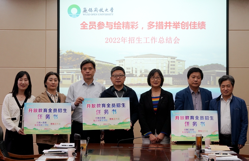 会上,人力资源处处长许珺宣读了《关于表彰2022年稳定和促进事业发展奖的决定》;安全保卫处处长蒋振勇宣读了《关于表彰2022年招生工作先进个人的决定》,党委书记奚小网为获学校稳定和促进事业发展奖的招生工作组颁发了荣誉证书,校长张旭为获得招生先进个人的教师颁发荣誉证书。随后,根据《无锡开放大学开放教育全员招生工作方案》,学校给三个招生工作组,即环境与设计学院和行政一支部工作组、机电与信息学院和行政二支部工作组、财经与管理学院和行政三支部工作组下达了2023年开放教育全员招生任务书。