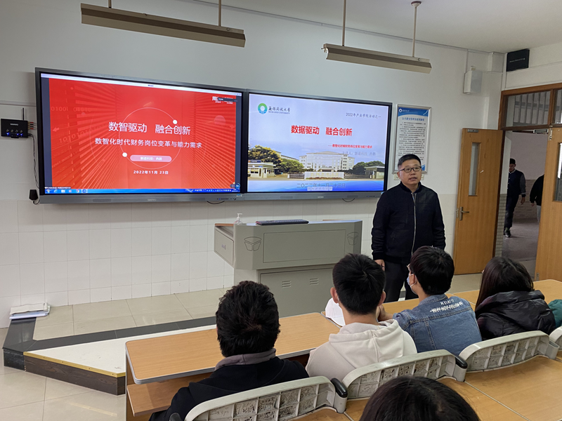 邵正林副院长给全体学生剖析本次讲座的深意,介绍了当前会计职业发展与变革的现状,解析产业技术的升级对财务人员提出新要求、新标准。作为大数据与会计专业的学生,要厘清专业含义,熟知会计业务场景、会计职业的新面貌,从而更好的消化专业知识和技能,实现理论与实践的精准融合。