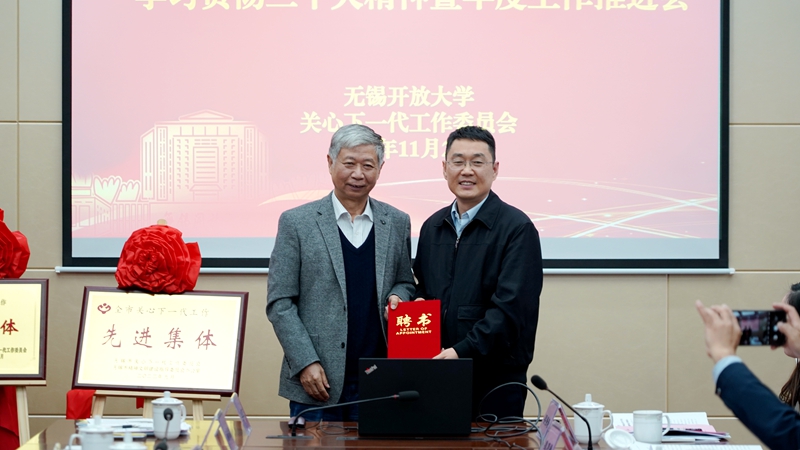 为了进一步推动校关工委的建设,向先进典型学习,学校特邀请江南大学关工委常务副主任、原学校党委副书记、副校长娄国栋教授为我校关工委“五育辅导员”。集体学习后,奚小网书记向娄国栋教授颁授“五育辅导员”聘书,代表学校感谢娄书记长期以来对我校关工委工作的关心和指导。接着,娄教授为全体与会人员作了《遵循规律,注重实效,推进二级学院关工委优质化建设》的专题辅导报告,分享了江南大学关工委建设的经验——党委重视是根本、队伍建设是基础、整体设计是重点、工作机制是保障,尊重规律是关键,充分发挥“五老”在学生思想政治工作方面的“政治优势、威望优势、经验优势”。娄书记的讲座内容务实、内涵深刻,对深化我校关工委工作非常有指导意义,全体与会成员深受启发。