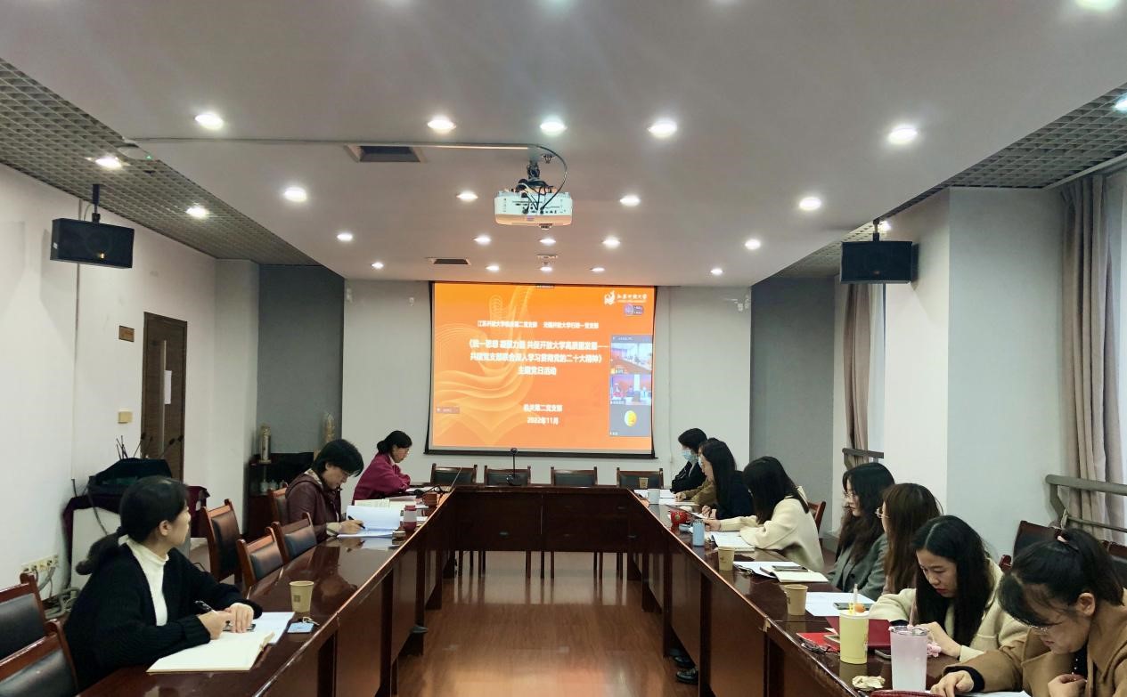 11月22日下午,我校行政一支部联合江苏开放大学机关第二党支部开展联学共建主题党日活动,两个支部以《统一思想 凝聚力量 共促开放大学高质量发展——共建党支部联合深入学习贯彻党的二十大精神》为主题,举行线上线下视频学习会,会议由江苏开放大学机关第二党支部书记段玉玲主持。