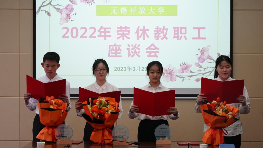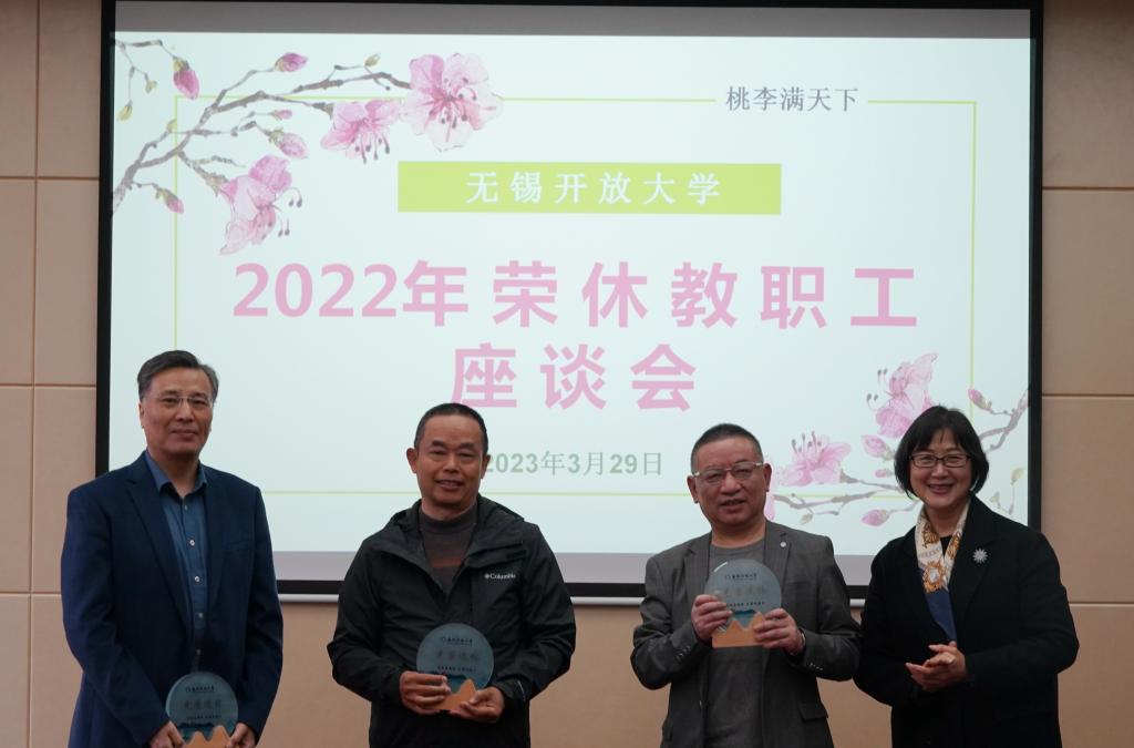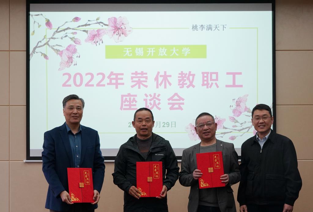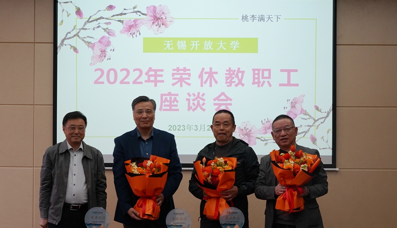 3月27日上午,无锡开放大学召开2022年度荣休教师座谈会,为2022年光荣退休的马纲、黄新华、朱永彦、浦宇岭等四位同志举办荣休欢送座谈会。学校党委书记奚小网,校长、党委副书记张旭,校纪委书记高峻,副校长、校工会主席邵小明等校领导出席会议。会议由邵小明主持。