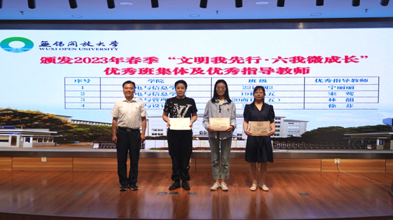 接着宣读了《关于表彰2023年“文明我先行·六我微成长”春季实践教育活动的通知》,党委副书记王仁刚为活动中涌现出的优秀班集体的班主任(优秀指导教师)宁丽丽、宋莺、林韻、徐芬颁发《荣誉证书》。鼓励全体班主任持续创新和深入推进“文明我先行▪六我微成长”育人项目,让每一学生均能在日复一日的积淀中增德性、长才干。