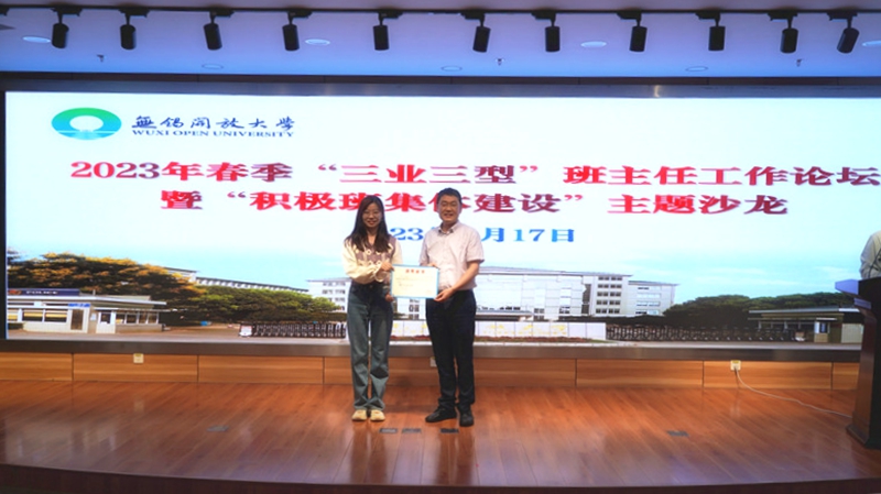 论坛伊始,首先宣读了《教育部全国职业院校技能大赛中职班主任技能比赛结果的通知》,校党委书记奚小网为环境与设计学院李慕芝老师颁发全国班主任比赛一等奖(国赛金牌)荣誉证书。奚书记赞誉李慕芝老师及学工条线尤其是备赛团队(杨晓俊、华晴岚、陈薇、陈坚、李传磊、武靖、魏旭峥、归敏丹、陆超、毛万年、董昆兴等)展现出的拼搏精神值得点赞,祝贺李慕芝老师为学校、为无锡市、江苏省摘得荣誉。