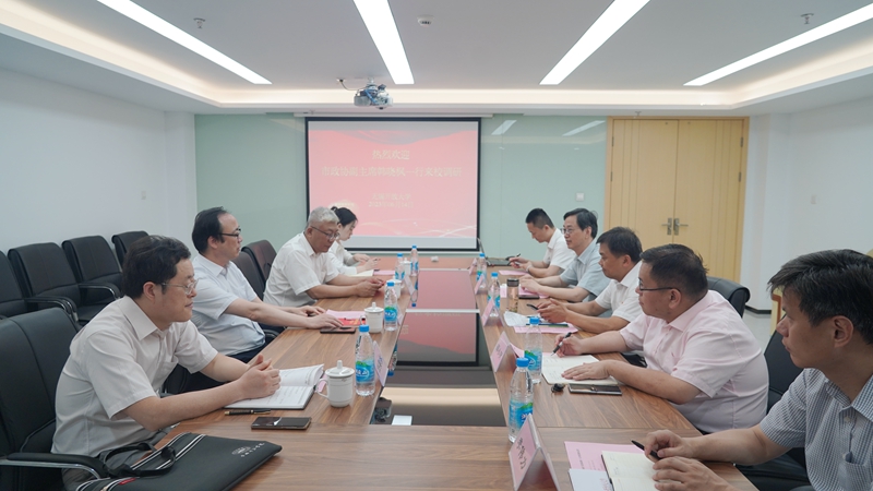 6月14日上午,市政协副主席韩晓枫率文教卫体委员会主任施正洲、副主任任英齐等一行四人来我校调研并看望市政协委员、教务处处长丁晓华。无锡开放大学党委副书记王仁刚、副校长邵小明及相关职能部门负责同志陪同调研。