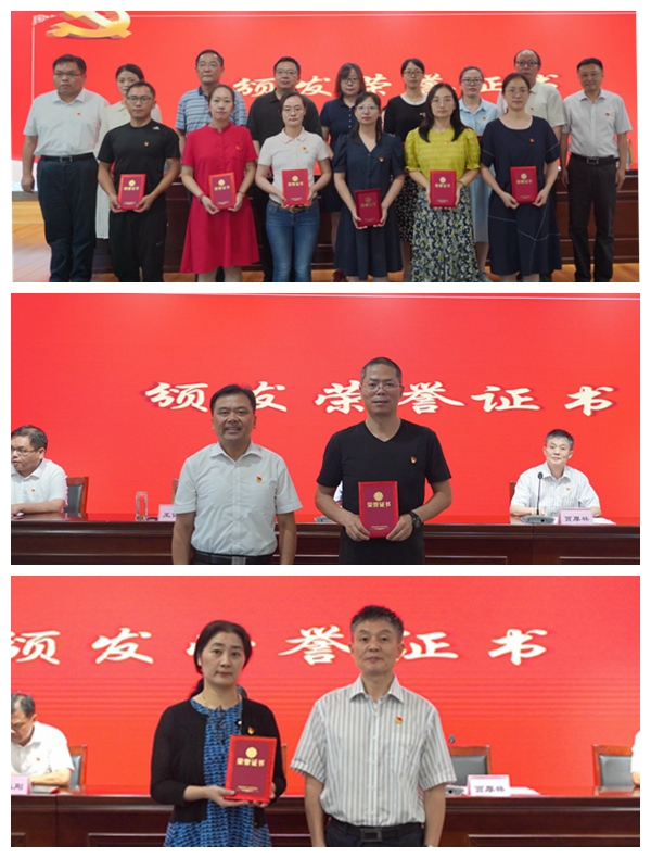 会议在庄严的国歌声中拉开帷幕,贾校长宣读表彰决定后,校领导班子成员分别为优秀共产党员、优秀党务工作者、先进基层党组织等荣誉称号获得者代表颁发证书。