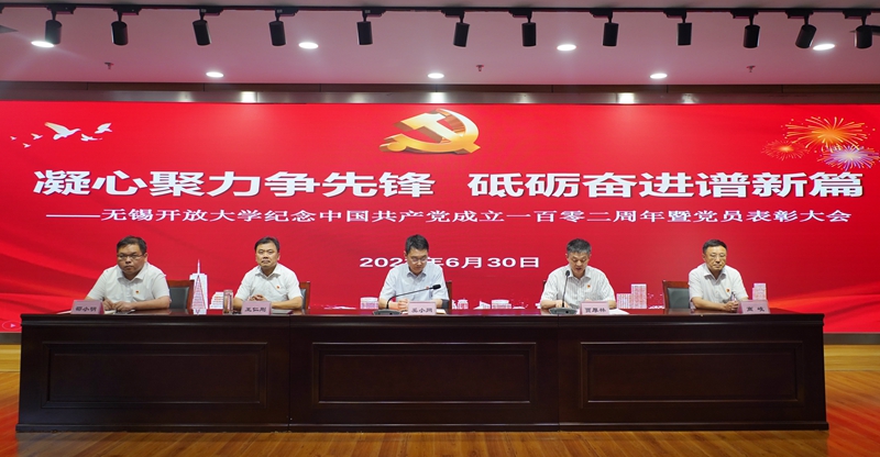榜样引领促发展,砥砺奋斗向前进。为庆祝中国共产党成立102周年,弘扬伟大建党精神,6月30日,无锡开放大学隆重举行庆祝中国共产党成立102周年暨党员表彰大会,表彰先进,鼓舞士气,进一步激励全体教职工不忘初心、牢记使命,以实际行动向党的生日献礼。会议由校长、党委副书记贾厚林主持,全体校领导、中层以上干部、教职工党员参加会议。
