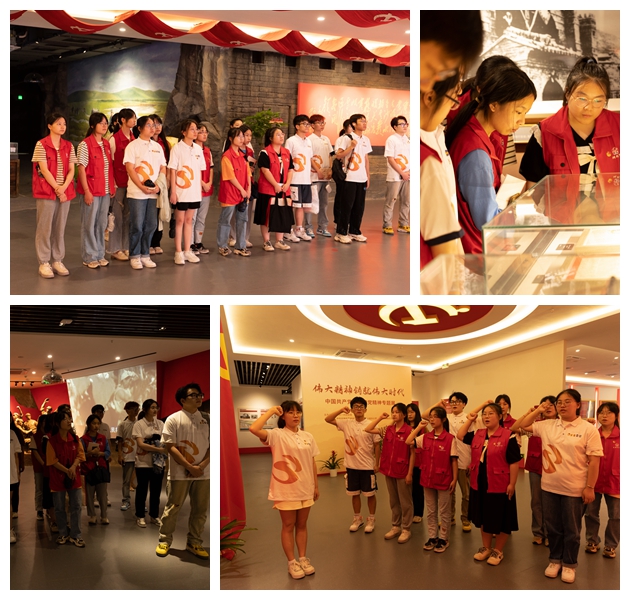 7日下午,实践队走进延安精神无锡学习天地。在延安精神的感召下,同学们开启了一段赓续红色血脉、传承奋斗精神的学习之旅。同学们先后参观了延安精神展示馆、延安故事馆、“公仆之路·学习步道”等特色场馆,学习了习近平总书记带领中共中央政治局常委瞻仰延安革命纪念地时的重要讲话精神。馆内丰富的图文实物、逼真的场景复原,给同学们以直抵心灵的参观体验,让大家感受到那段中国革命波澜壮阔的历史。最后,党员老师与团员同学们分别重温了入党誓词和入团誓词。