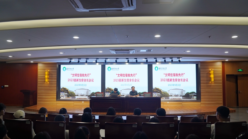 当日下午,财经与管理学院党总支书记罗鸣、环境与设计学院院长魏旭峥和副院长武靖、机电与信息学院党总支副书记梁静涛潜心备课,分别组织召开所在学院的全体住宿生会议,结合学院育人特色,辅导住宿新生尽快适应集体住宿生活。晚上六点,学生工作处、团委召开“文明住宿我先行”新生宿舍长会议。学生工作处杨勇处长介绍了学校立项改造提升宿舍的背景和改造后的宿舍情况,希望宿舍长和全体学生倍加爱护新宿舍的设施与环境,严格遵守学生宿舍管理规定,积极创建“文明我先行▪5S文明宿舍”,勉励舍长广泛凝聚舍友共识,建好宿舍文明公约,撰写好《“自觉自律·文明住宿”承诺书》,积极争创院级、校级文明宿舍。