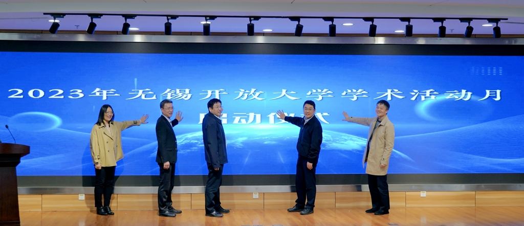 各位领导移步到主席台,手抚大屏,共同开启“2023年无锡开放大学学术活动月”,共同见证最为激动人心的时刻。