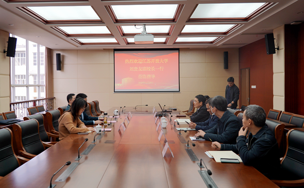 11月23日上午,江苏开放大学副校长刘贵友、招生工作处处长陈翀受邀来校现场指导,学校党委书记奚小网、党委副书记王仁刚接待了刘贵友副校长一行。