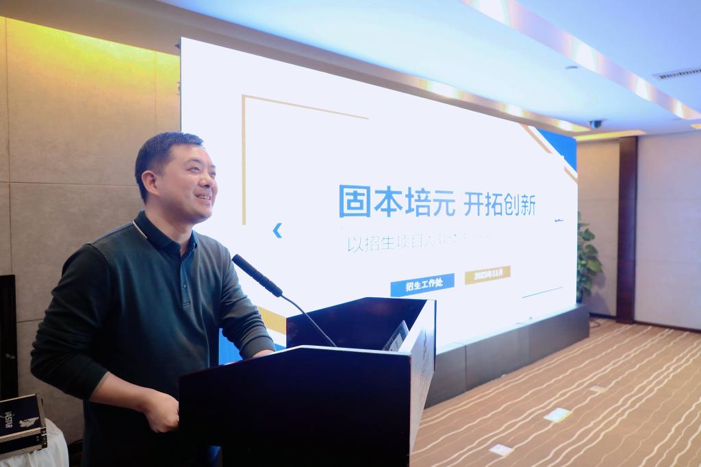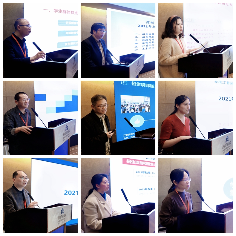 江苏开放大学招生工作处处长陈翀结合招生详细数据总结汇报了2021-2023年开放教育的招生情况,指出近三年开放教育招生始终坚持着“稳规模、优结构、强规范、提质量”这一工作思路;并对今后开放教育招生工作作出部署,明确了下一步工作思路,提出要以招生项目为载体,开拓创新,努力提升整个办学系统的共创能力,构建一个兼具价值、发展、责任的三位共同体,更好服务全民终身学习。