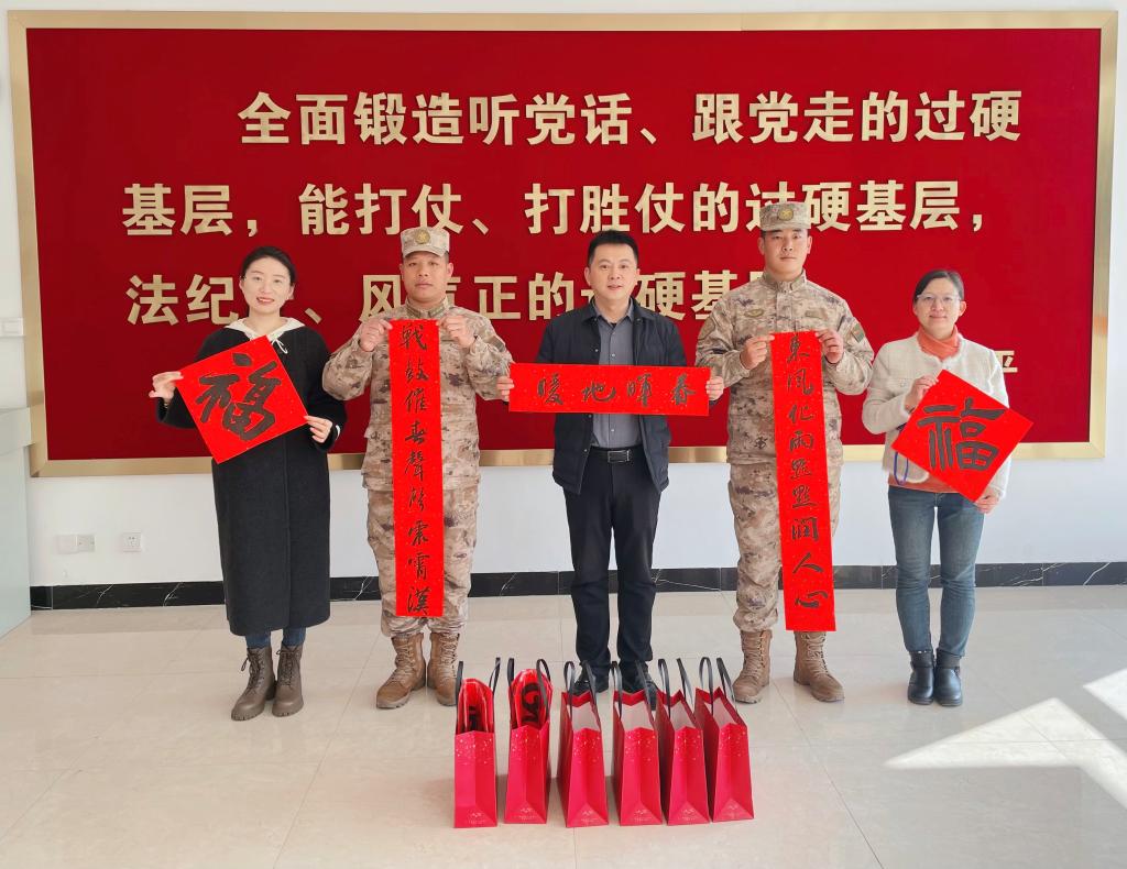 21日上午,宋祖楼副校长带领学生工作处相关负责人将满载祝福的春联送至部队官兵手中,传递了学校对他们的深切关怀与新年祝福。部队官兵亦备受感动,将此春联视为对自身职责的肯定与激励,更加坚定了保家卫国、守护和平的信念。