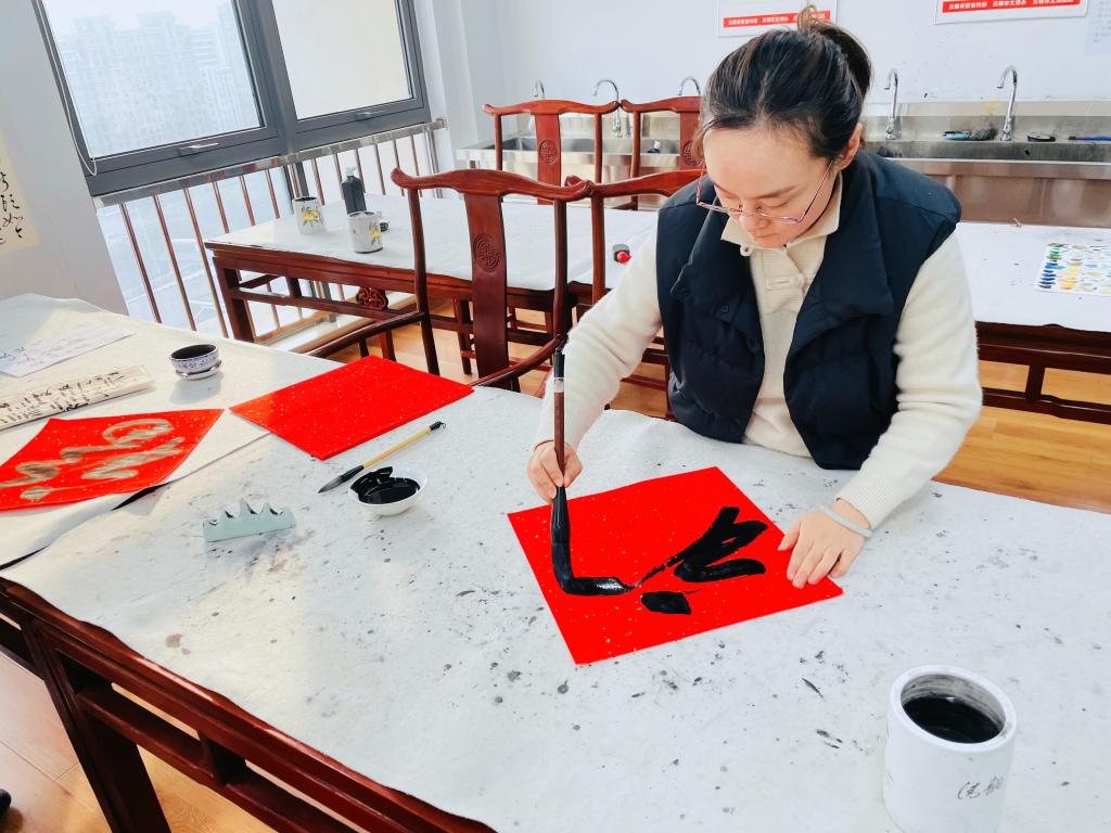 活动现场,墨香四溢,暖意盈盈。一幅幅春联在笔下逐渐绽放,它们或苍劲雄浑,或温婉雅致,不仅彰显了中华传统文化的博大精深,更凝聚了无锡开放大学师生对共建部队官兵的深情厚谊与美好祈愿。书法老师与学校师生代表以深厚的书法功底和独特的艺术风格,将吉祥寓意、遒劲笔力融入春联之中,每一笔每一划都蕴含着对部队官兵的崇敬之情和对国家繁荣昌盛的美好祝愿。