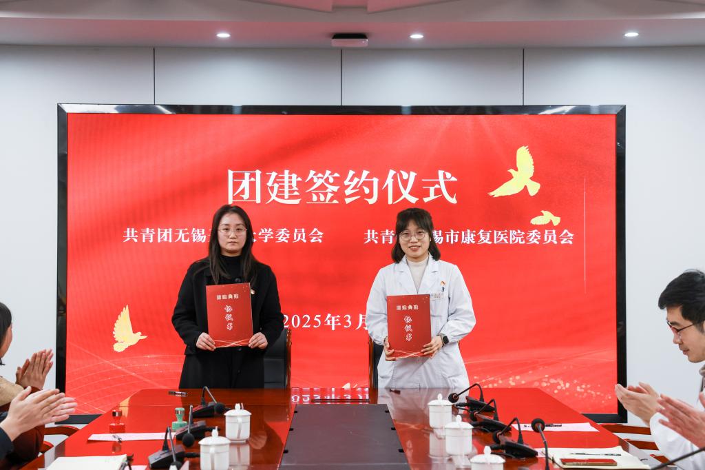 在与会人员的热烈掌声中,双方正式签订《团建共建合作协议》与《党支部结对共建协议书》。校团委与医院团委、行政二党支部与康复党支部完成结对,标志着双方在组织建设、志愿服务等领域开启了全方位合作新篇章。