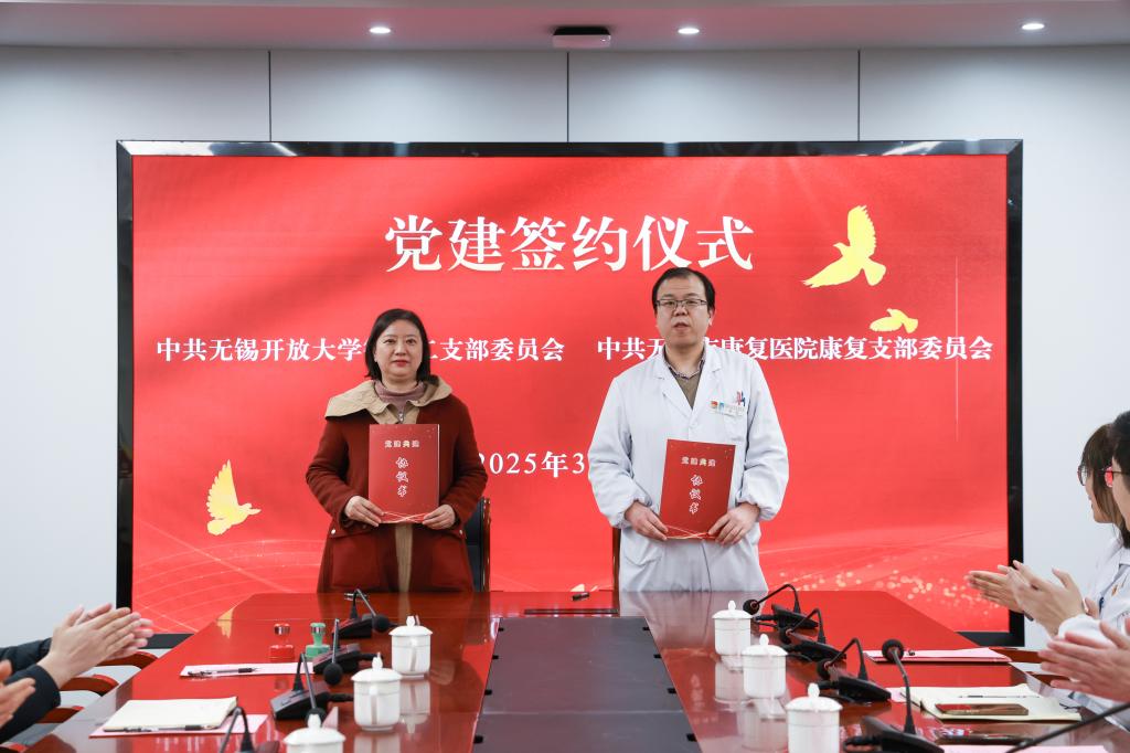3月7日下午,我校与无锡市康复医院联合举办的共建仪式在无锡市康复医院隆重举行。校党委书记贾厚林、副校长宋祖楼,无锡市康复医院党委书记顾晓明、副院长姚雍铭出席活动,校、院相关职能部门负责同志参与其中。