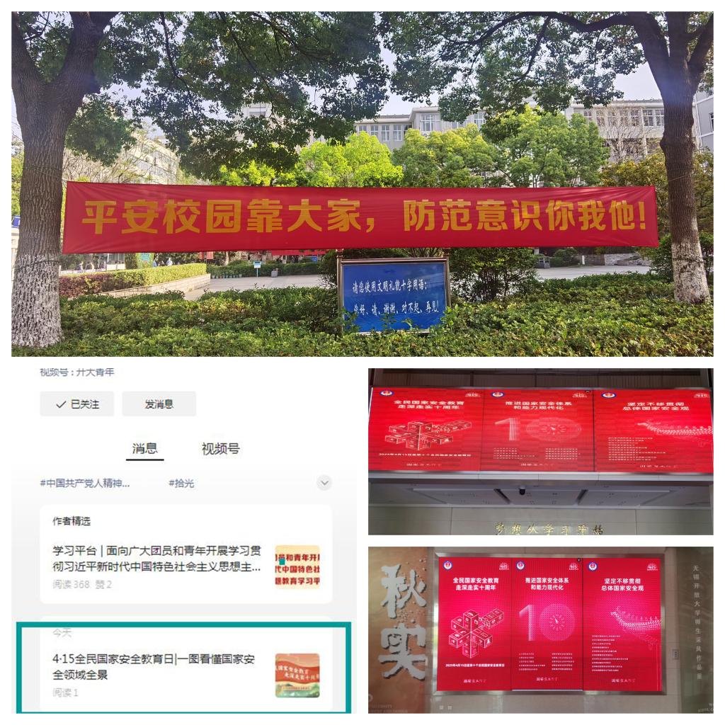 为坚定不移贯彻总体国家安全观,推动国家安全宣传教育工作走深走实,在校园中营造人人参与、人人负责,共同维护国家安全和社会安全的良好氛围,在4月15日第十个全民国家安全教育日前后,我校安全保卫处、团委、学生工作处和各学院联合开展以“厚植爱国情怀,共筑安全防线”为主题的国家安全教育系列活动。