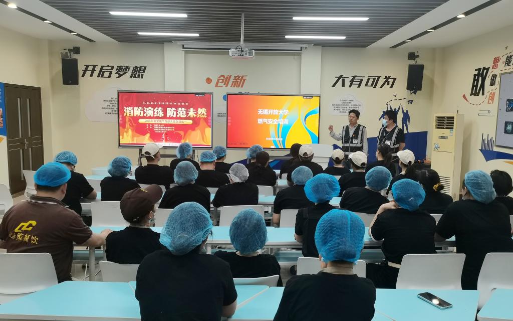为深入贯彻落实《无锡开放大学校园及周边安全稳定治理提升实施方案》要求,4月23日下午,学校组织开展食堂消防和燃气安全演练活动,结合市教育局五一安全检查的要求,全面强化从业人员安全意识和应急处置能力。副校长宋祖楼,无锡市公安局梁溪分局驻校警官章慧、后勤资产处、安全保卫处负责人和服务外包单位代表和食堂全体员工参加了活动。