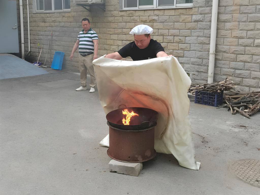 最后,食堂工作人员进行了灭火器实操训练,进一步巩固消防器材的使用技能。