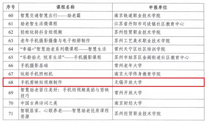 此次入选是无锡开放大学服务国家终身教育体系建设的重要成果。未来,学校将持续优化“智慧助老”教育资源,开发更多适老化课程,探索线上线下融合教学模式,助力老年人实现“老有所学、老有所乐、老有所为”,为服务学习型城市建设贡献开大力量。