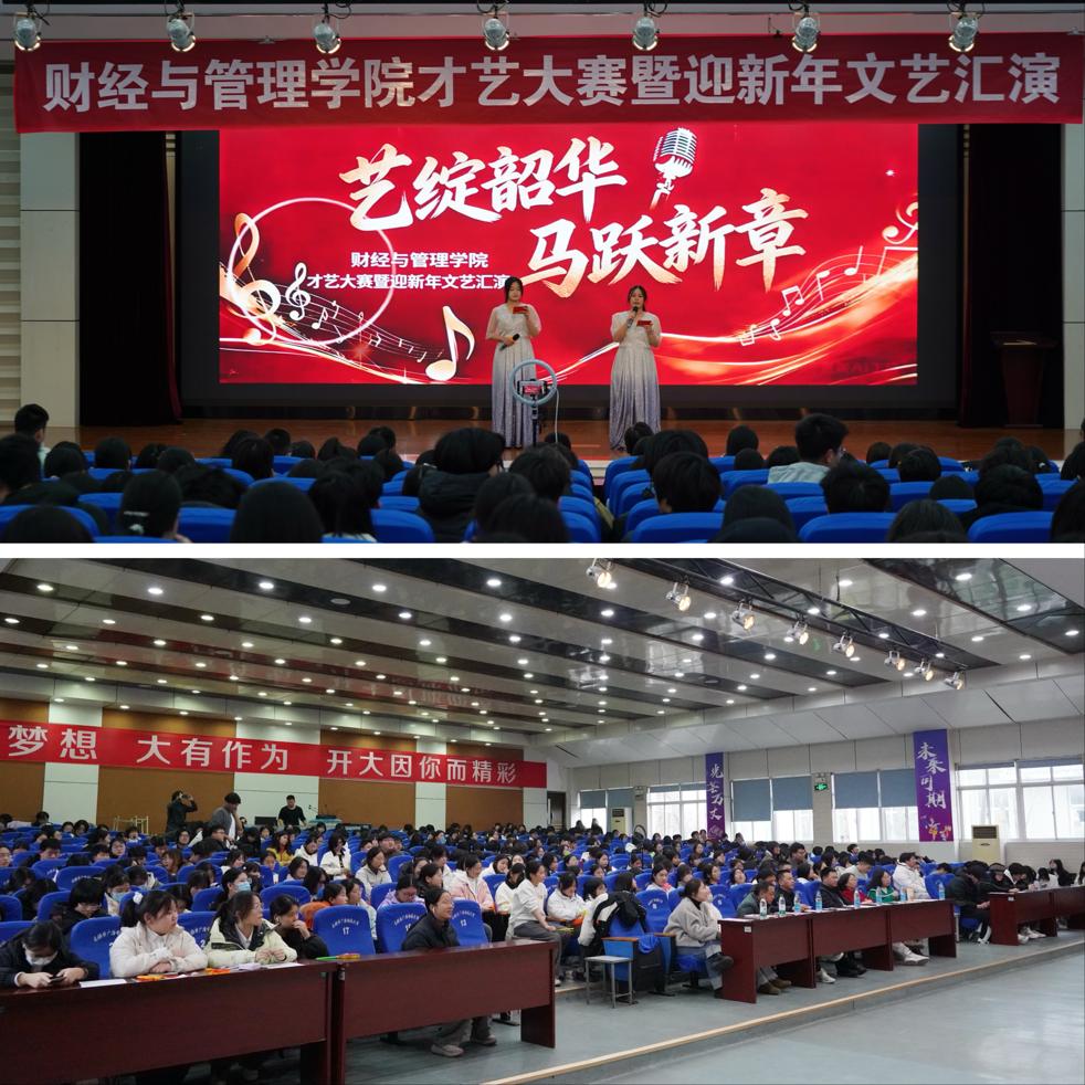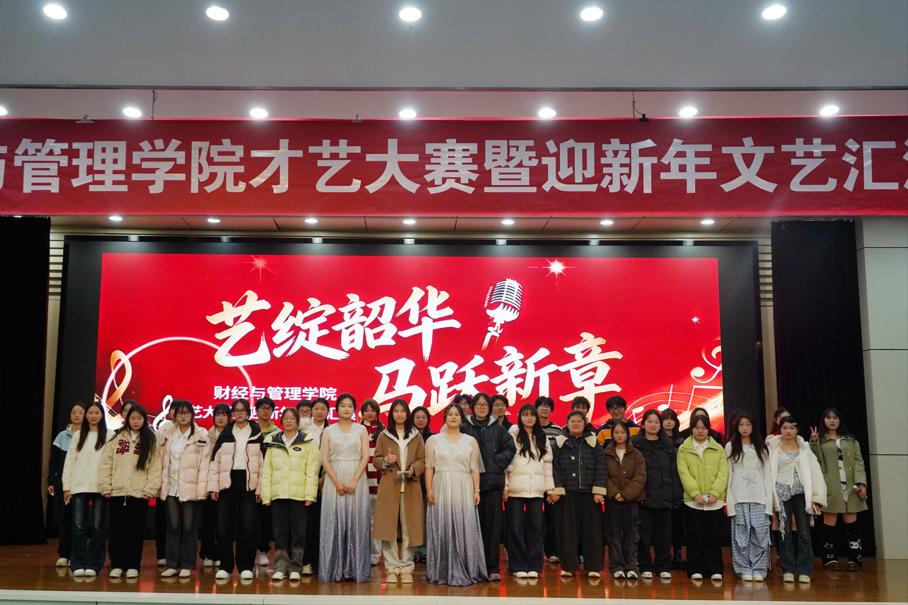岁序更迭,新章将启。在2026年新年即将来临的温馨氛围中,我校财经与管理学院“艺绽韶华 马跃新章”才艺大赛暨迎新年文艺汇演如期举行。学校副校长宋祖楼、相关处室和学院负责人以及24、25级全体师生欢聚一堂,在歌舞、朗诵、舞台剧的交织中共赴一场青春与艺术的盛宴,共同迎接新年的到来。