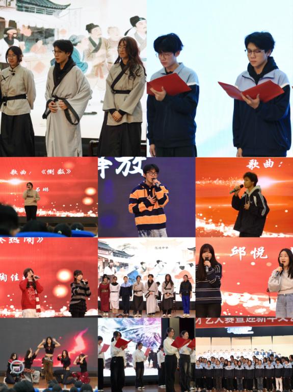 值得一提的是,舞台剧《范进中举》成为本次汇演的一大亮点。参演同学凭借扎实的表演功底,将经典文学形象刻画得惟妙惟肖,台词与舞台表现力俱佳,诙谐处令人捧腹,深刻处引人深思,让台下师生沉浸式感受到传统文化与校园艺术相融合的独特魅力,赢得满堂喝彩。此外,校舞蹈队的《Tomboy》舞步利落、气场十足;朗诵《以青春之名 赴时代之约》慷慨激昂,尽显青年学子的责任与担当;短视频作品《泥人不语 尽藏人间烟火》则以细腻视角捕捉生活温情,传递出深切的人文思考。独唱《嗜好》、合唱《微微》等声乐节目旋律动人,学生会演绎的《山河颂》以及24会计1班呈现的《江畔》,更将对新年的期盼、对家国的热爱融入表演之中,引发全场共鸣。互动环节的设置,让师生同台参与,现场欢声笑语不断。