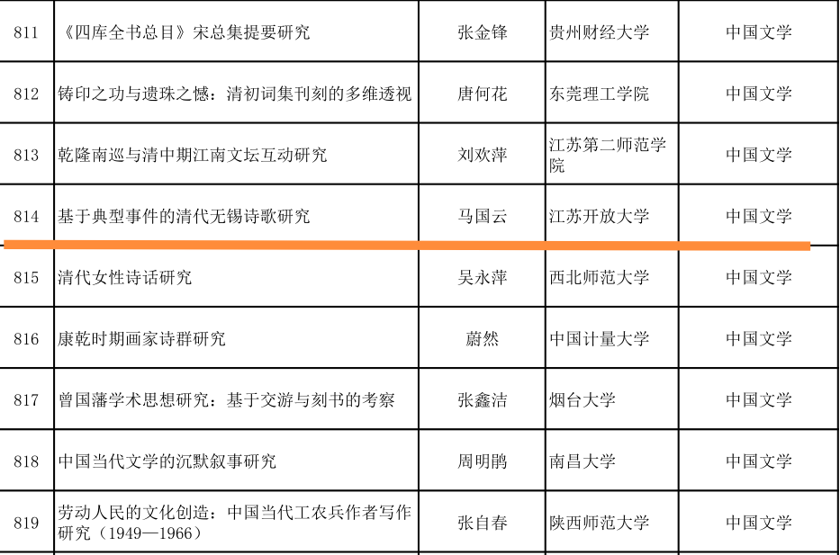 国家社会科学基金项目是我国哲学社会科学领域层次最高、权威性最强、竞争最为激烈的国家级科研项目,是体现高校科研实力的重要标志之一。《基于典型事件的清代无锡诗歌研究》项目采用“文学社会学”研究视角,以“典型事件”为切入点,系统梳理了自明清易代直至清末民初,无锡一地地方诗歌文献和发展脉络,对重要代表诗人、重要诗歌作品、重要诗歌现象、重要诗歌流派等进行系统梳理和深入阐述,将无锡诗歌置于清代诗歌的“诗史”中作系统观照,对无锡地域文化和江南文脉研究具有重要的补充价值。