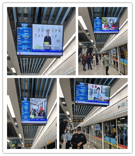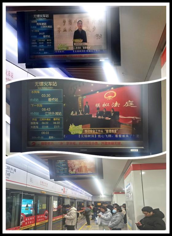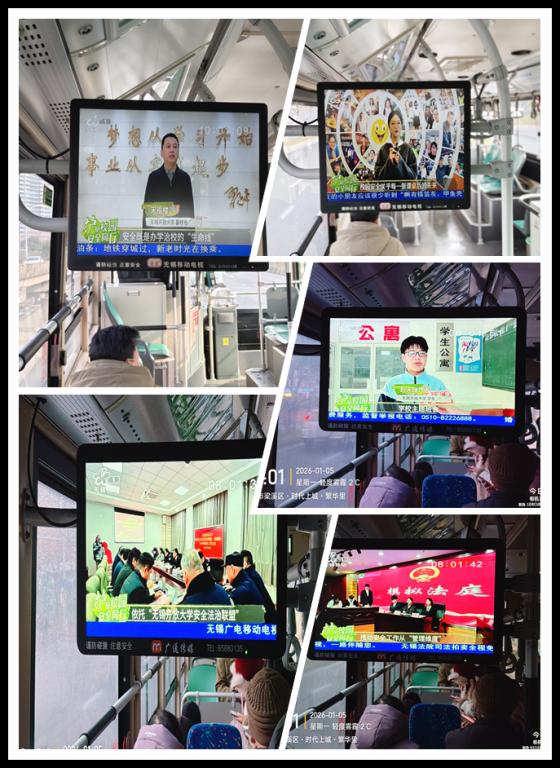 本次宣传活动覆盖广泛、渠道多元,形成了线上线下全域传播格局。公交领域近6000块移动电视屏,地铁1-4号线站台、站厅及车厢内5000块移动电视屏,共计超1万屏终端协同发力,在通勤高峰等关键时段滚动播放,精准触达广大市民群体;同时,宣传内容同步入驻无锡博报App校园安全专栏,实现了“空中+地面”“线上+线下”的全方位覆盖,让校园安全理念触手可及。
