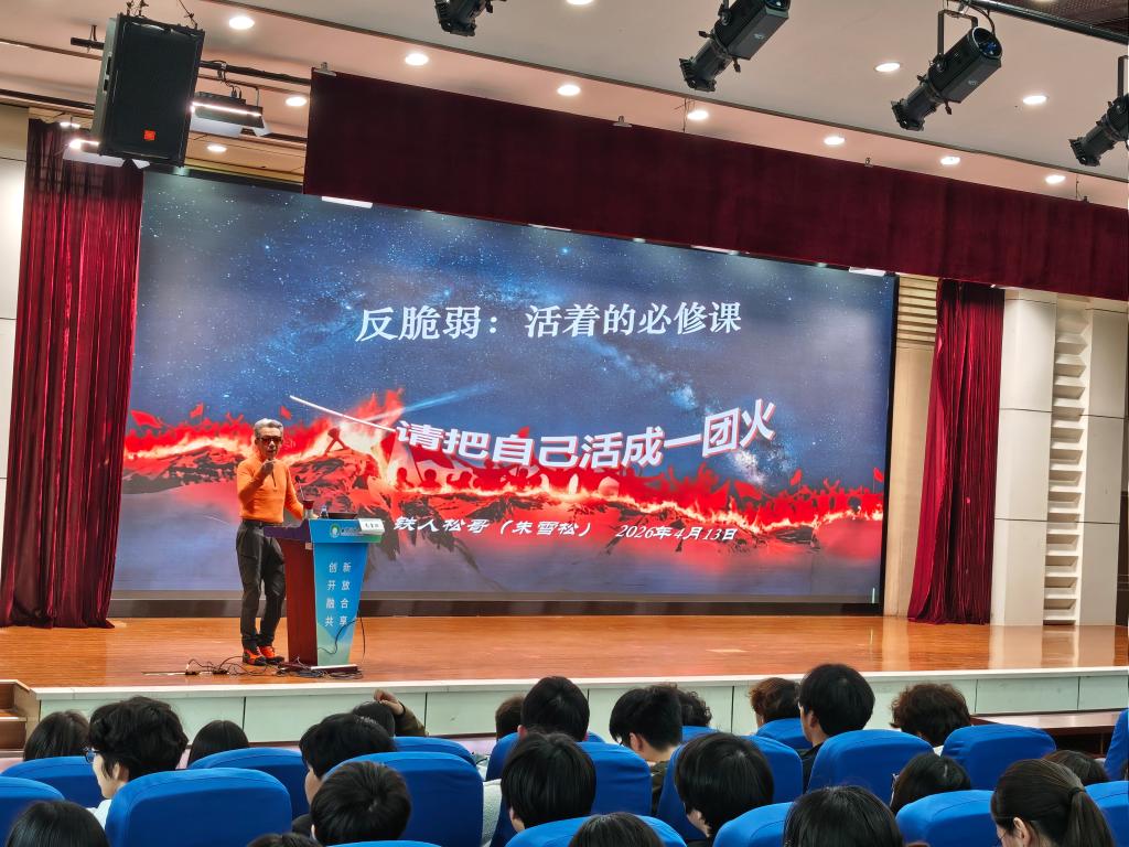 本次讲座以榜样力量引领青年树立积极向上的人生态度,在挫折中成长、在挑战中蜕变。被誉为全能“铁人”的主讲嘉宾朱雪松教授,深耕教育领域多年,退休后积极投身关心下一代工作,常年奔走开展公益德育宣讲,一心用自身经历为青年成长引路。讲座现场,他抛开枯燥的理论说教,结合自己的求学之路、工作坚守、自我突破与公益践行经历,和同学们面对面谈心交流。他用坚持终身学习、不断突破自我的过往,保持自律、直面人生各类挑战的心得体会,鼓励在场青年学子珍惜校园时光,不躺平、不浮躁,面对困难不退缩,始终保持积极向上的生活态度,脚踏实地走好每一步成长路。
