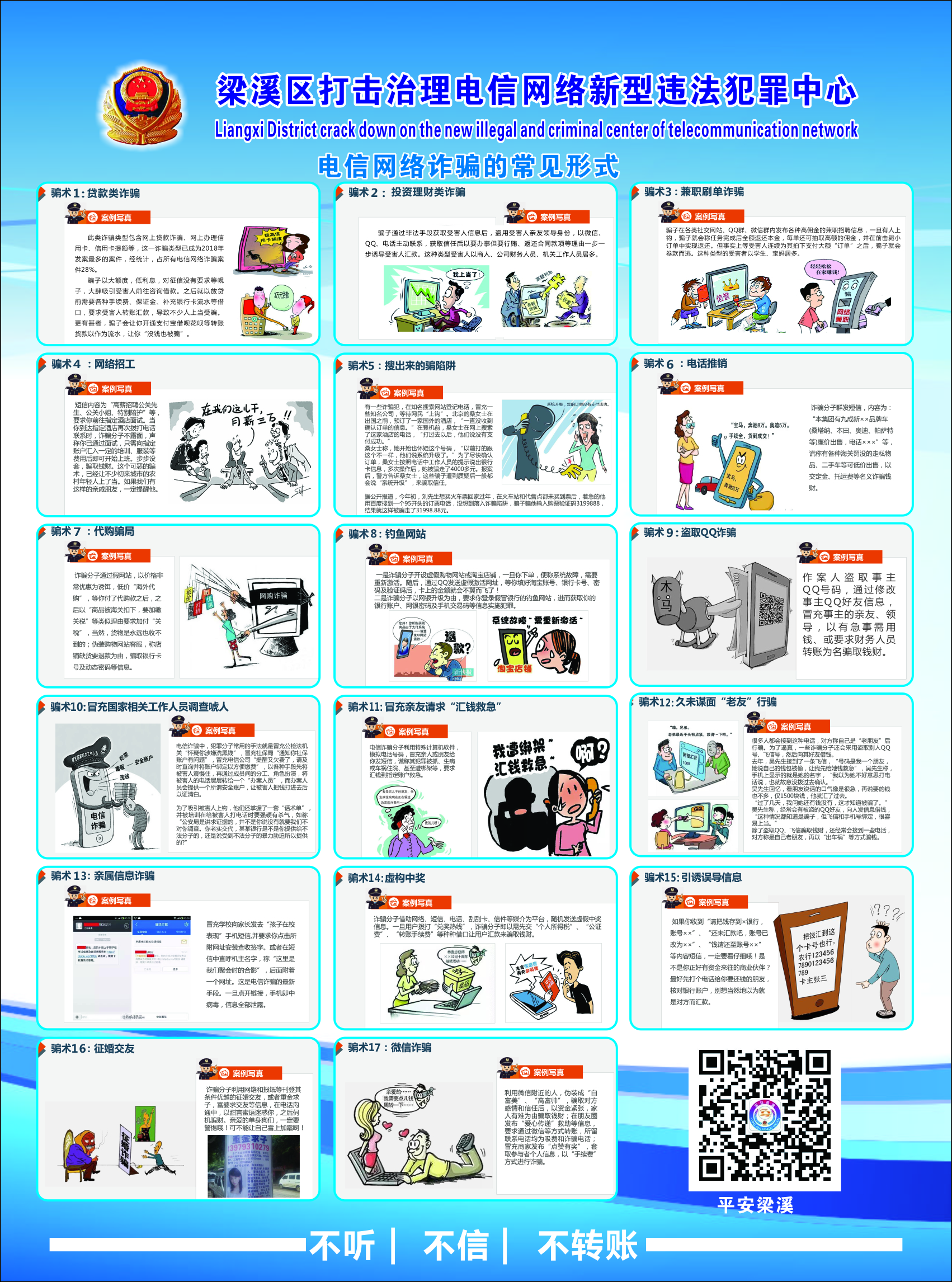 今年以来,市委市政府部署开展“全民反诈”工作,针对电信网络诈骗采取有力措施,调动全社会力量,通过“打、治、防、宣”多管齐下、同步推进,积极构建全链条反诈、全行业阻诈、全社会防诈的工作格局。为了您的财产安全,请认真阅读此告知书,以增强识骗防骗的能力和意识,有效保护您的个人信息和财产安全。