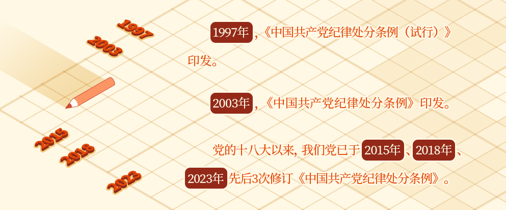 2023年12月,中共中央印发了修订后的《中国共产党纪律处分条例》,这是党的十八大以来,我们党第3次修订《中国共产党纪律处分条例》。下面,我们一起回顾《条例》如何与时俱进,不断修订完善。